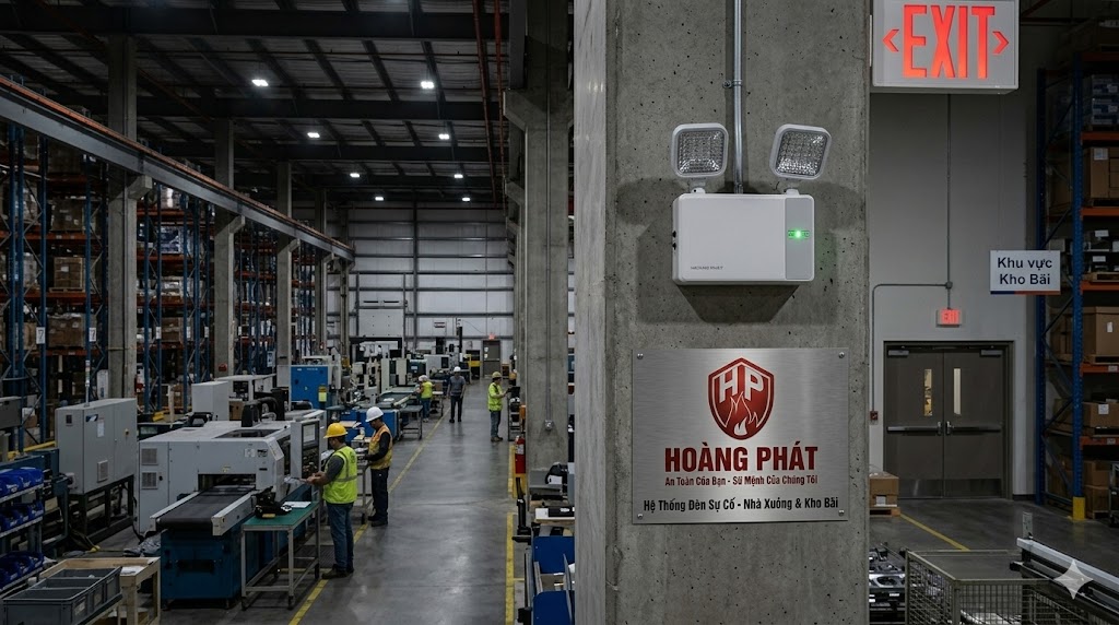 Môi trường công nghiệp thường khắc nghiệt với bụi bặm, độ ẩm cao hoặc diện tích cực lớn. Do đó, đèn sự cố cho nhà xưởng cần sự mạnh mẽ và bền bỉ.